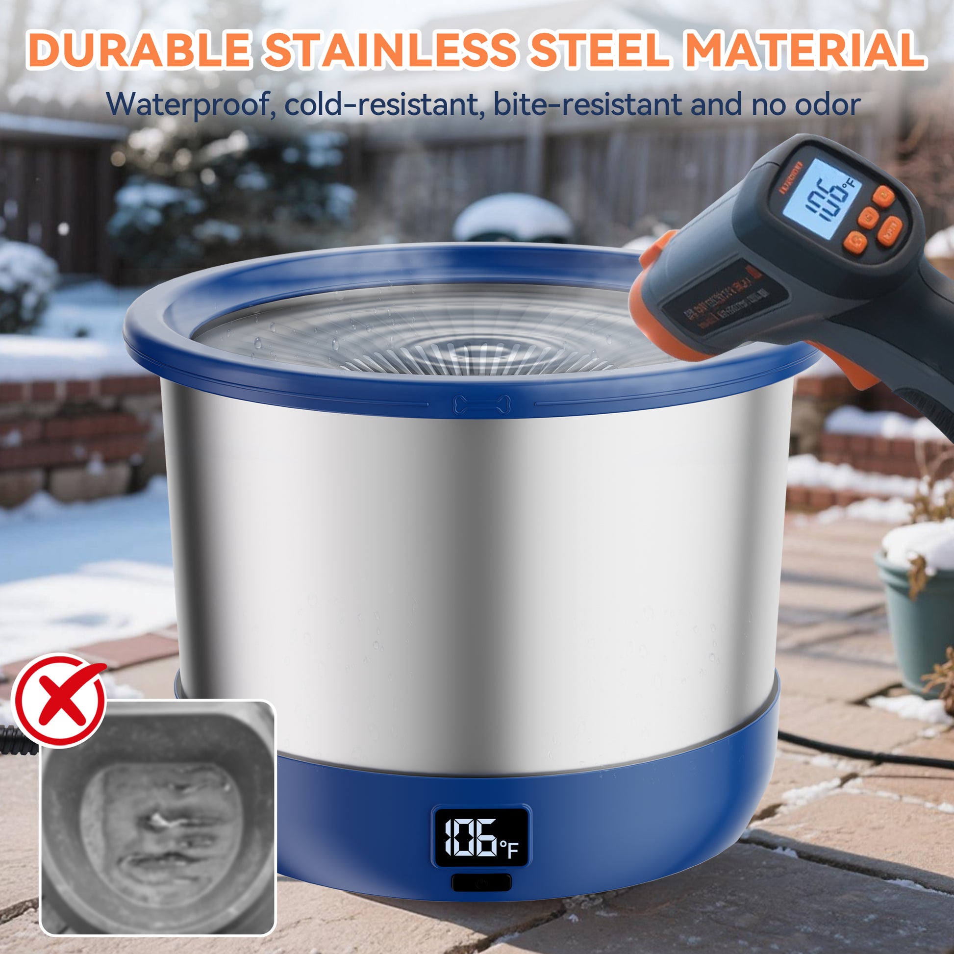 - Stainless Steel Material: Our upgraded heated pet bowl is specially designed for cold climates, with the the advantages of waterproof, cold-resistance and fast heating. Compared with traditional heated bowl, our heated dog water bowl are more sturdy and durable