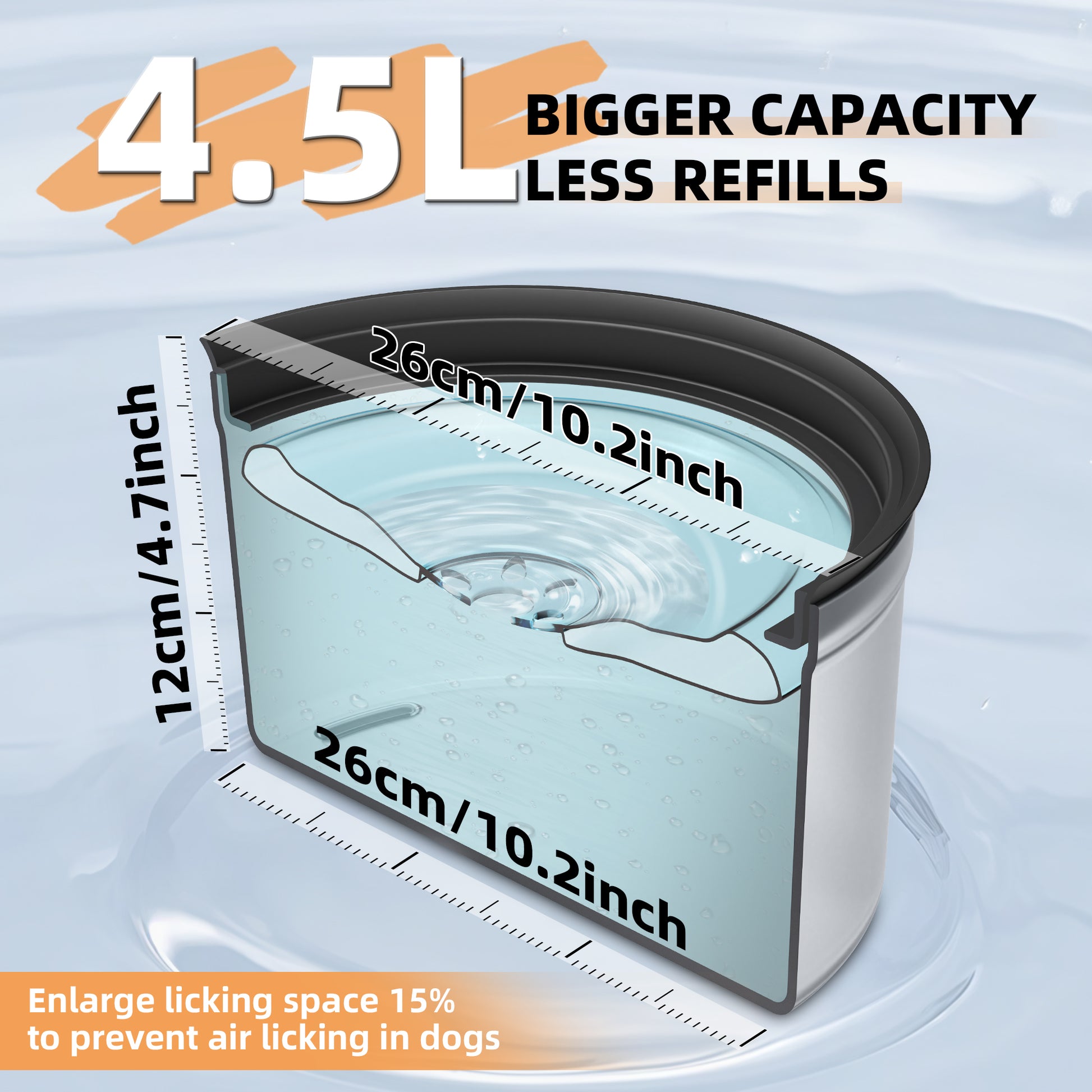 - 1.2-gallon (approximately 1.2 liters) large-capacity water bowl: This 1.2-gallon (approximately 1.2 liters) large-capacity dog water bowl can meet the daily drinking needs of multi-pet households or large dogs without frequent refilling. It is perfect for home use, travel, or outdoor adventures, reducing the need for refills and keeping your pet hydrated anywhere.